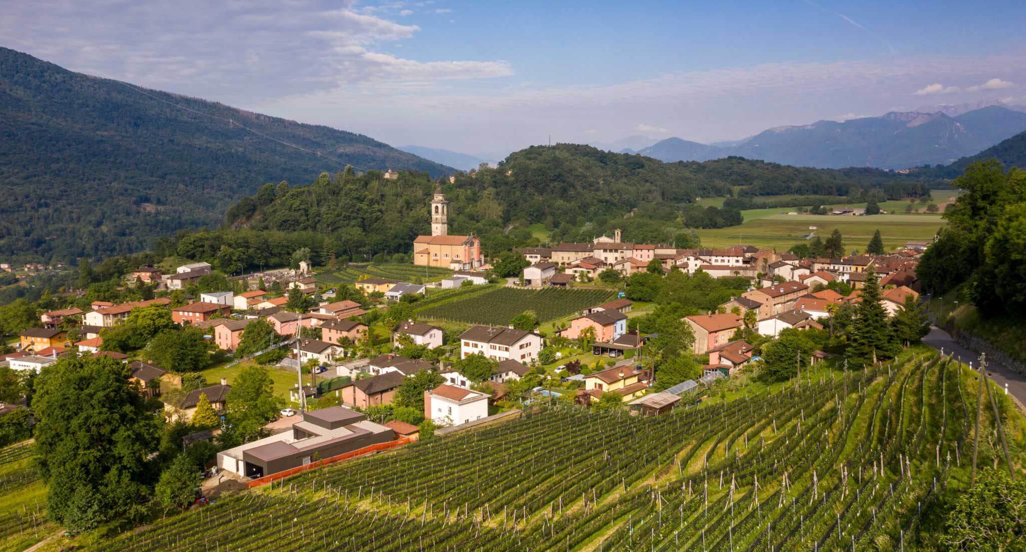 Diese Lage überquillt förmlich von Leben. Es kreucht und fleucht und flattert überall – Insekten-Vielfalt, Blumenpracht bis hin zur Wildschwein Rotte – alle und alles da. Es ist der Rebberg mit der höchsten Biodiversität. Ein mystischer und schöner Ort, praktisch mitten im Wald. Die etwas erhöhte Lage erlaubt eine etwas spätere Reife. Der Blick kann von hier weit schweifen – vom Lago Maggiore bis ins Walliser Monte Rosa Massiv mit der Dufourspitze.